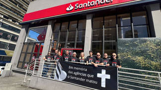 Nesta terça-feira, 4, funcionários e funcionárias do Santander realizaram o Dia Nacional de Luta em todo o país. As mobilizações aconteceram em protesto contra o fechamento de agências, as demissões e a contratação fraudulenta de mão de obra — prática em que o banco demite trabalhadores com todos os direitos garantidos pela Convenção Coletiva de Trabalho (CCT) e os recontrata por meio de empresas terceirizadas do próprio grupo espanhol, com perda de direitos e redução salarial.